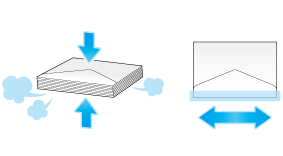 When loading envelopes, remove air from them, and securely press along the flap fold line. Otherwise, it will result in an envelope wrinkle or paper jam.