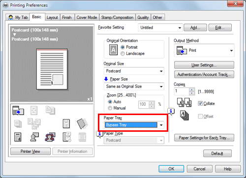 Select [Bypass Tray] from [Paper Tray].