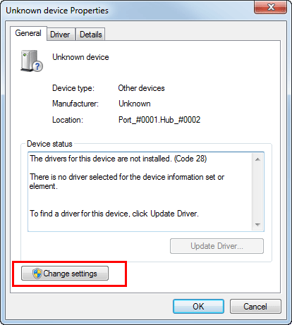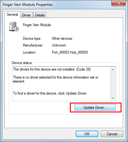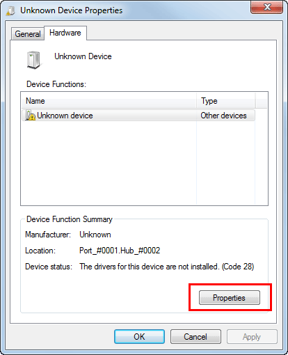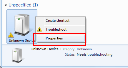 Right-click the device name or [Unknown Device] of the IC Card Authentication Unit displayed in the [Unspecified] category, then click [Properties].