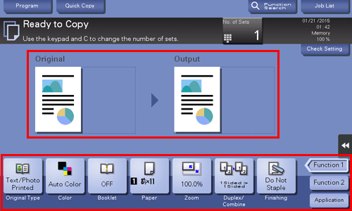 If desired, tap [Check Setting] before starting a copy, and check the setting.