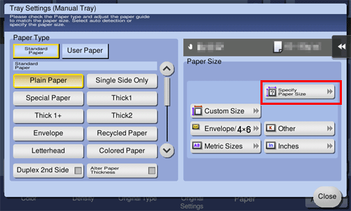 Tap [Change Tray Setting] - [Specify Paper Size].