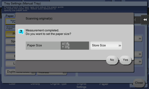 Measure the size of custom paper using the Original Glass. If you register the measured size in the memory, you can reduce the number of steps required to enter the size from the next time.