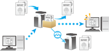 If the frequently used original data is stored in the User Box, you do not need to search for the document or data when they are being printed or sent. Because you do not need to operate the printer from a PC, you can reduce operation time and improve the efficiency with which you carry out tasks.