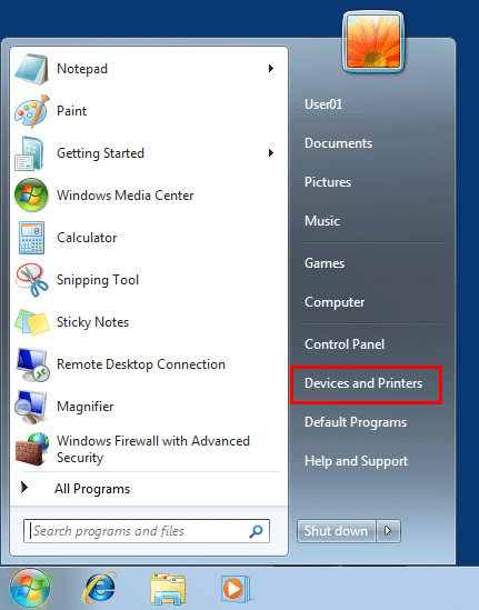• In Windows 7/Server 2008 R2, click the Start menu, then click [Devices and Printers].