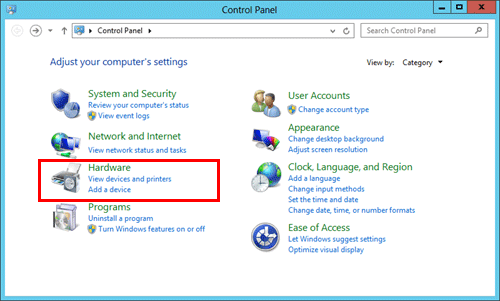• In Windows Server 2012/Server 2012 R2, while pressing the [Windows] () key, press the [X] key, and then click [Control Panel] - [Hardware] - [View devices and printers] in the displayed menu.