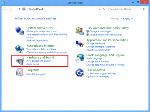 If Devices and Printers is not displayed, click [Control Panel] - [Hardware and Sound], then click [View devices and printers].