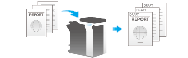 Texts such as "PLEASE REPLY" and "DO NOT COPY" are printed on the first page or all pages. You can select the text to be added from the registered fix stamps and arbitrary registered stamps.