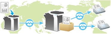 This machine supports the Relay RX function. It receives a fax as a relay station and automatically distributes it to multiple programmed destinations.