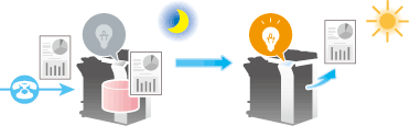 While this machine is inactive, for example, during breaks or night hours on working days, press the Power key to set the Sub Power Switch OFF mode, reducing the power consumption. It is impossible to print faxes received in Sub Power OFF mode. To print them, press the Power key to release the Sub Power OFF mode.