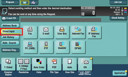 [Address Type] | The destination type selected in the [Direct Input] are displayed. |