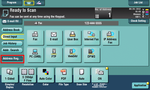 When finishing to enter a fax number, tap [Address Reg.].