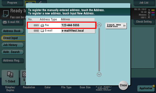 When a fax has been sent to the directly entered fax number, tap [Address Book] and check that the fax number is registered.
