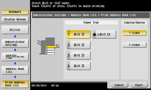 Tap [Utility] - [Administrator Settings] - [One-Touch/User Box Registration] - [One-Touch/User Box Registration List] - [Address Book List].