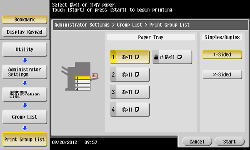 Tap [Utility] - [Administrator Settings] - [One-Touch/User Box Registration] - [One-Touch/User Box Registration List] - [Group List].
