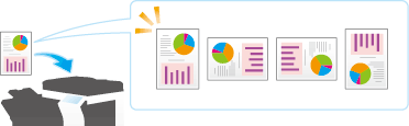 Originals are scanned with different settings for each set, and copied collectively. Use this function when various types of originals are mixed, such as 1-sided original to be printed on one side of paper, and 2-sided original to be copied by enlarging. After all originals have been scanned, you can add page numbers or finishing functions, such as sort, to copy them.