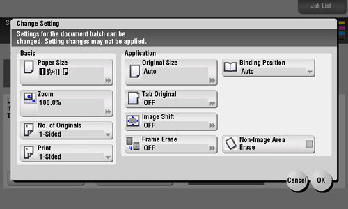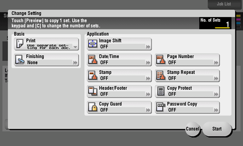 If desired, tap [Change Setting] to change the copy settings according to the new original.