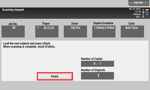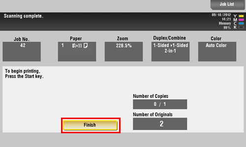 After both sides of the card are scanned, tap [Finish] and the Start key.