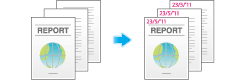 Add the date, time and any other desired text in the top and bottom margins (header/footer) of the specified page. You must register the information to be added to the header and footer on this machine in advance.