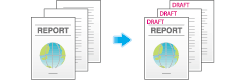 Text such as "PLEASE REPLY" and "DO NOT COPY" are printed on the first page or all pages. You can select the text to be printed from the registered fix stamps and arbitrary registered stamps.