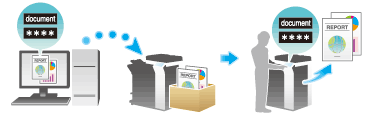 The document ID and password are required to print out the files stored in the Secure Print User Box. After the file has been printed out, it is deleted automatically. This box is used to handle classified documents.