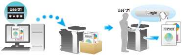 When you print a document from the PC in the user authentication system environment, the files transferred with the ID & Print function are stored in the ID & Print User Box. When a user who has sent the print data logs in to this machine and opens the User Box, he can preview, print out, or delete the stored file.