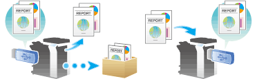 Once you have opened the User Box, you can print out a file stored on a USB memory. Also, you can read the original data and directly save it as a file in the USB memory. You can also move a file from the USB memory to the External Memory User Box.