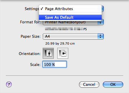 In the [Page Setup] window of the printer driver, you can change the default settings for paper and zoom ratio.